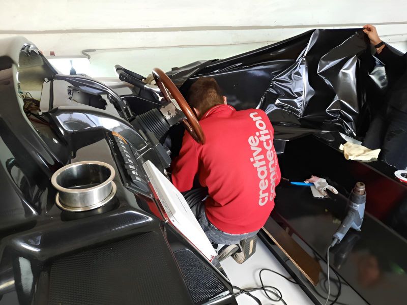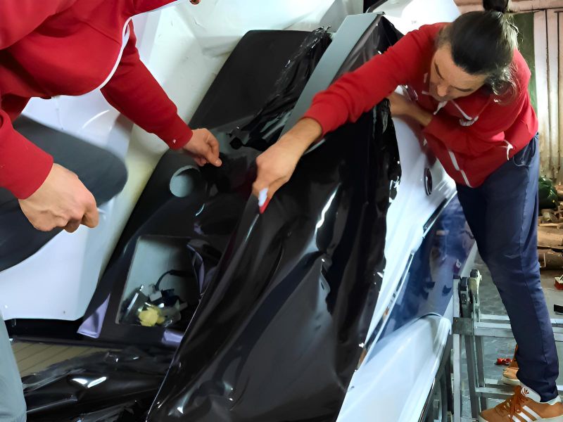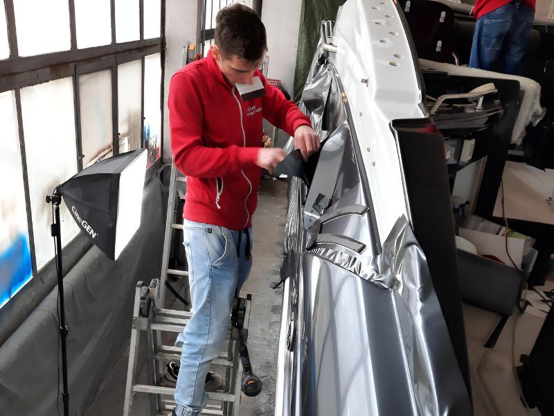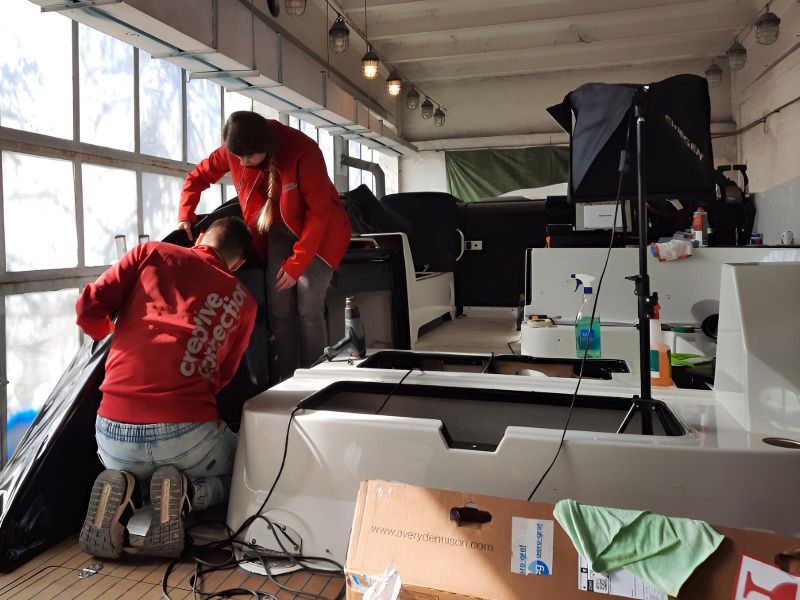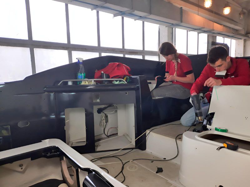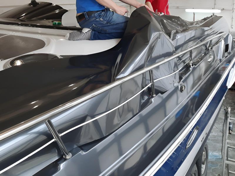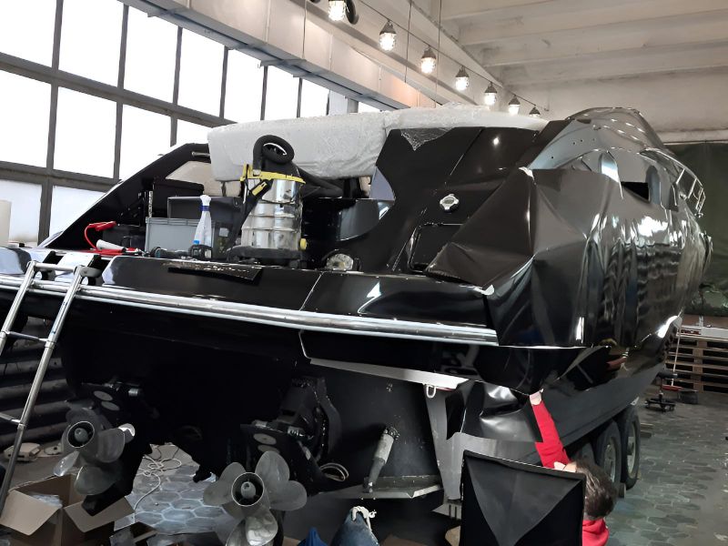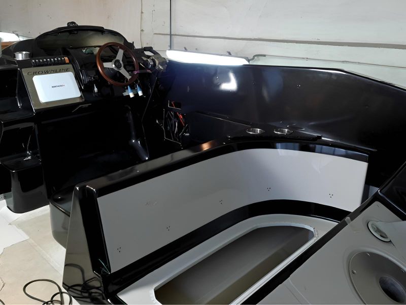 Realizacja obejmowała pełne oklejenie zewnętrznej części łodzi motorowej Crowline 320, a także kompleksowe oklejenie kokpitu. W miejscach, w których aplikacja folii była niemożliwa, powierzchnie zostały precyzyjnie pomalowane, aby zachować spójny efekt wizualny. Dzięki połączeniu obu technik jednostka zyskała świeży, nowoczesny wygląd i perfekcyjne wykończenie.