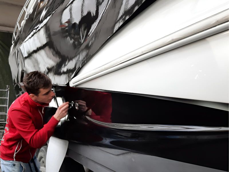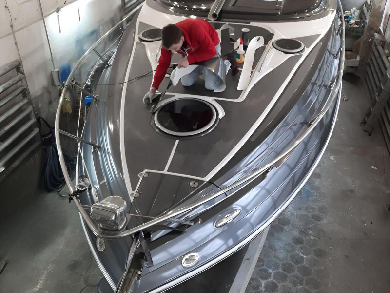 Malowanie dziobu na łodzi Crowline 320